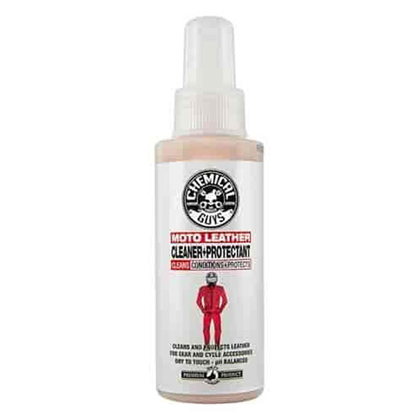 DescriptionCleans and protects all motorcycle leathers and leather parts.Restores a new matte sheen and soft supple feel.Helps prevent cracking and fading from normal use.Dry-to-the-touch feel without any greasy residue.Works on all leather motorcycle parts, accessories, and apparel.Safe for natural leather, sealed leather, and fully synthetic leather and pleather.Easy to use spray on/wipe off formula.