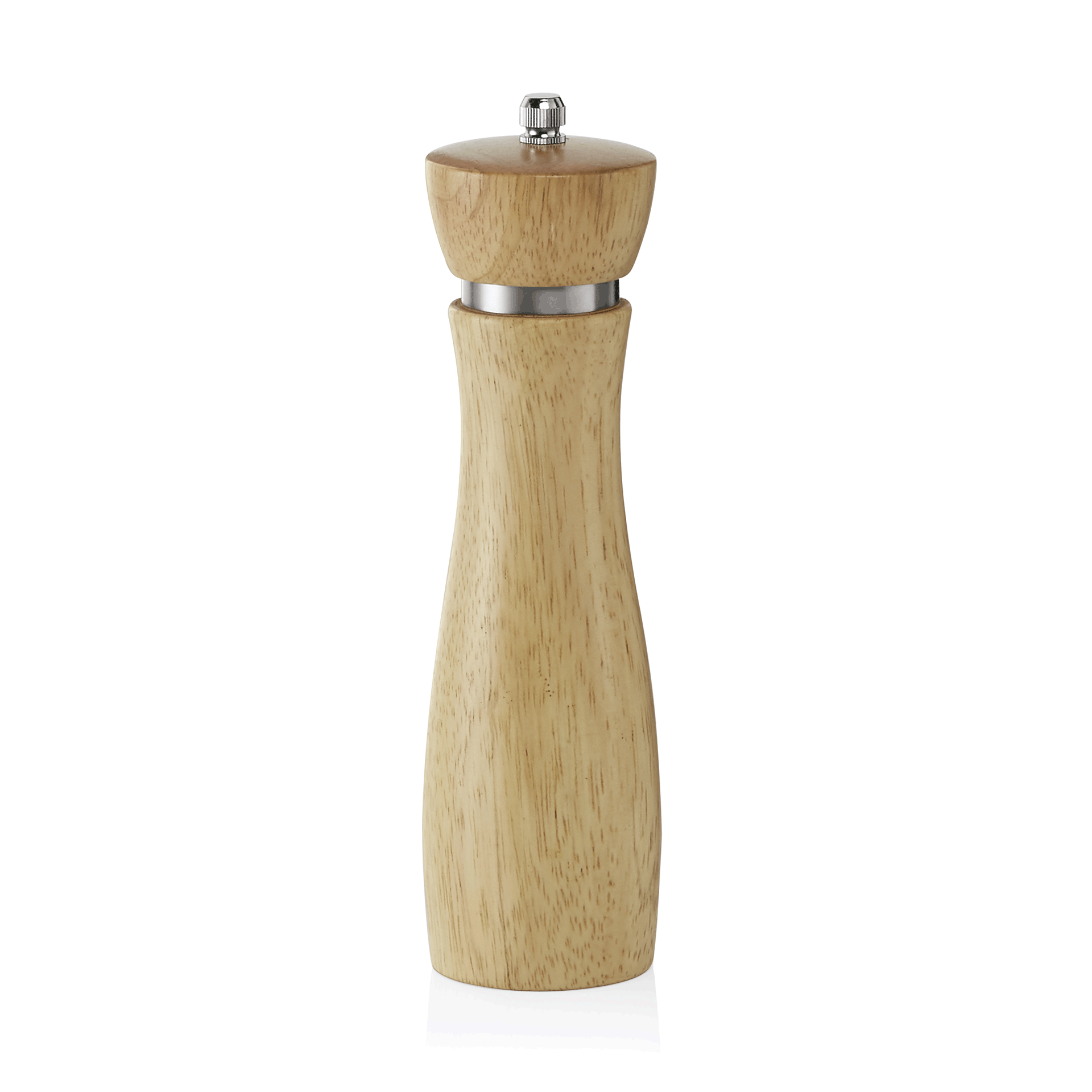 Pepper mill in a light oak wood style finish with a fitted ceramic grinder.