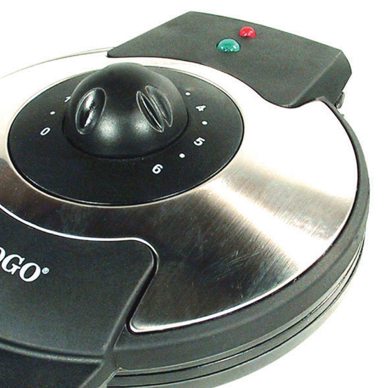 * Dual pilot lights indicating when the unit is on and when the waffle is ready