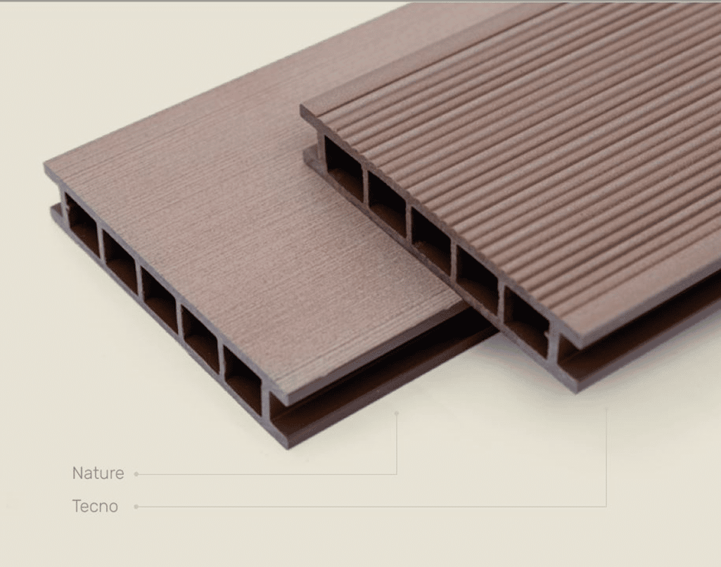 Tarimatec is a WPC flooring composed of plant fibres and a polymer composite. WPC decks are low maintenance, and are available in two formats: hollowcore and solid.